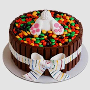 Check out the Easter bunny diving into a sea of M&Ms in our Easter KitKat Bunny Cake. Beneath the M&Ms you can find moist vanilla or chocolate cake all held together with KitKat bars and a pretty bow. Serves 15 to 20 people.